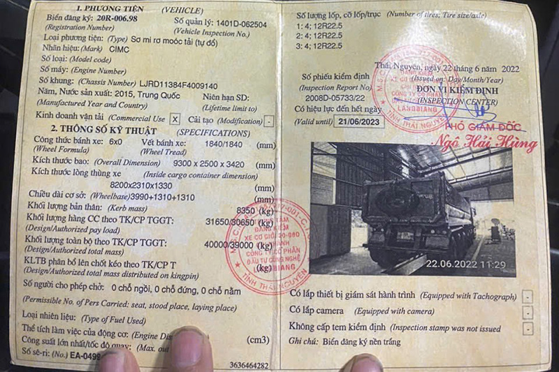 Đăng kiểm mooc ben CIMC cũ 2015
