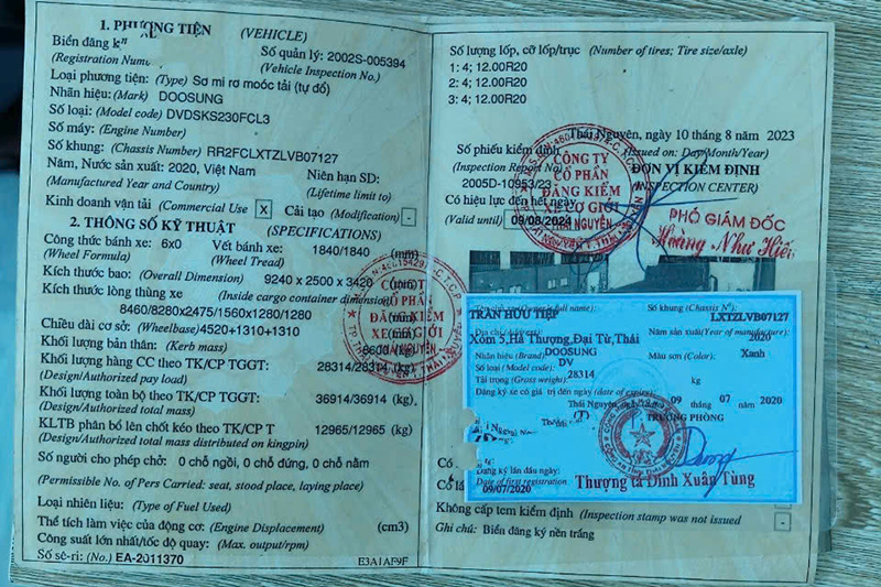 Đăng kiểm mooc ben doosung cũ 2020